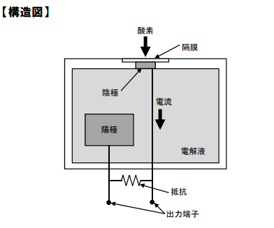 從輸出端子中取出ㄝ傳感器輸出與氧氣濃度(分壓)成正比。