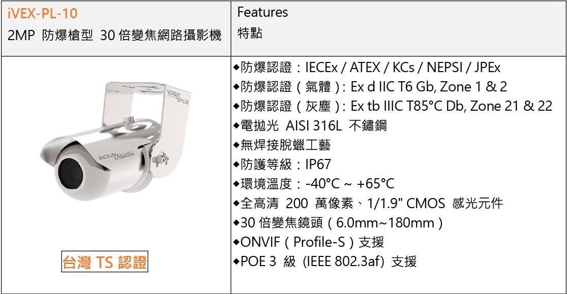 iVEX-PL-10 2MP 防爆槍型 30倍變焦網路型攝影機